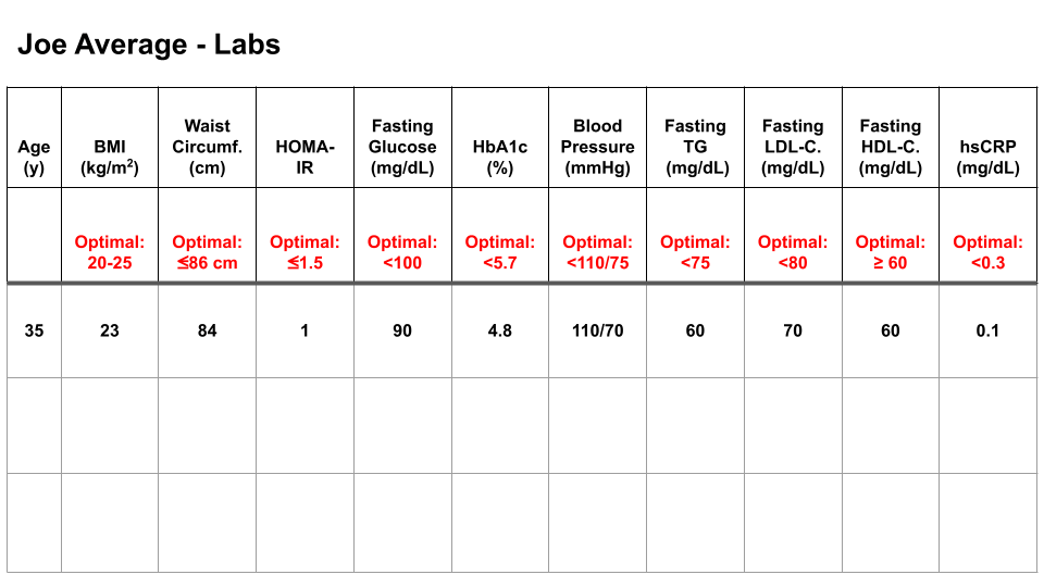 所以让我们回顾之前的乔先生,思考一下,随着时间的推移,他的不良饮食和生活方式的后果如何表现为胰岛素抵抗综合征和主要慢性疾病风险。