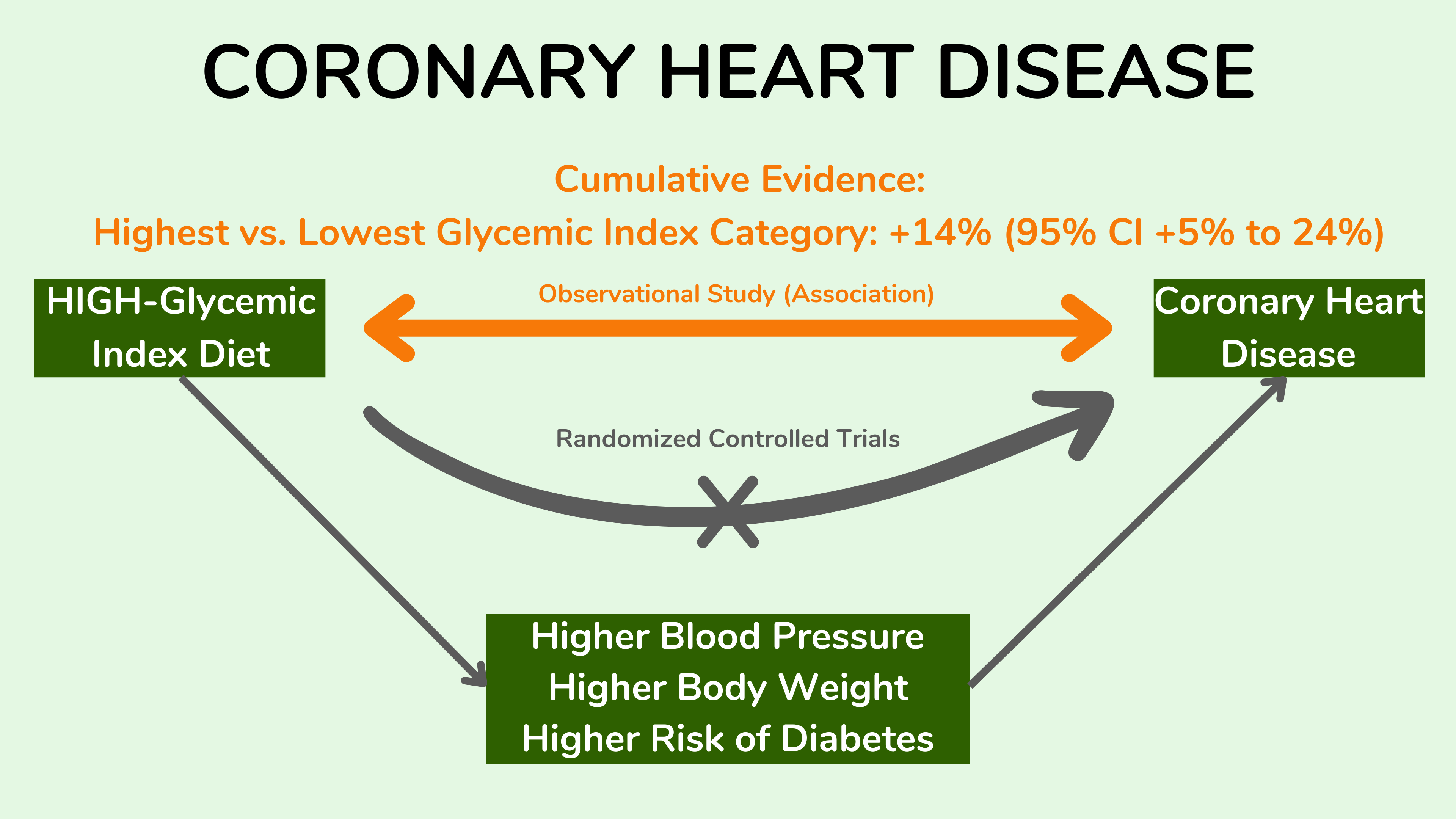 对于冠心病,对 10 项观察性研究的荟萃分析显示,与食用低血糖指数饮食的人相比,食用高血糖指数饮食的人患冠心病的风险增加 14%。同样,这是比较最高五分位数与最低五分位数。