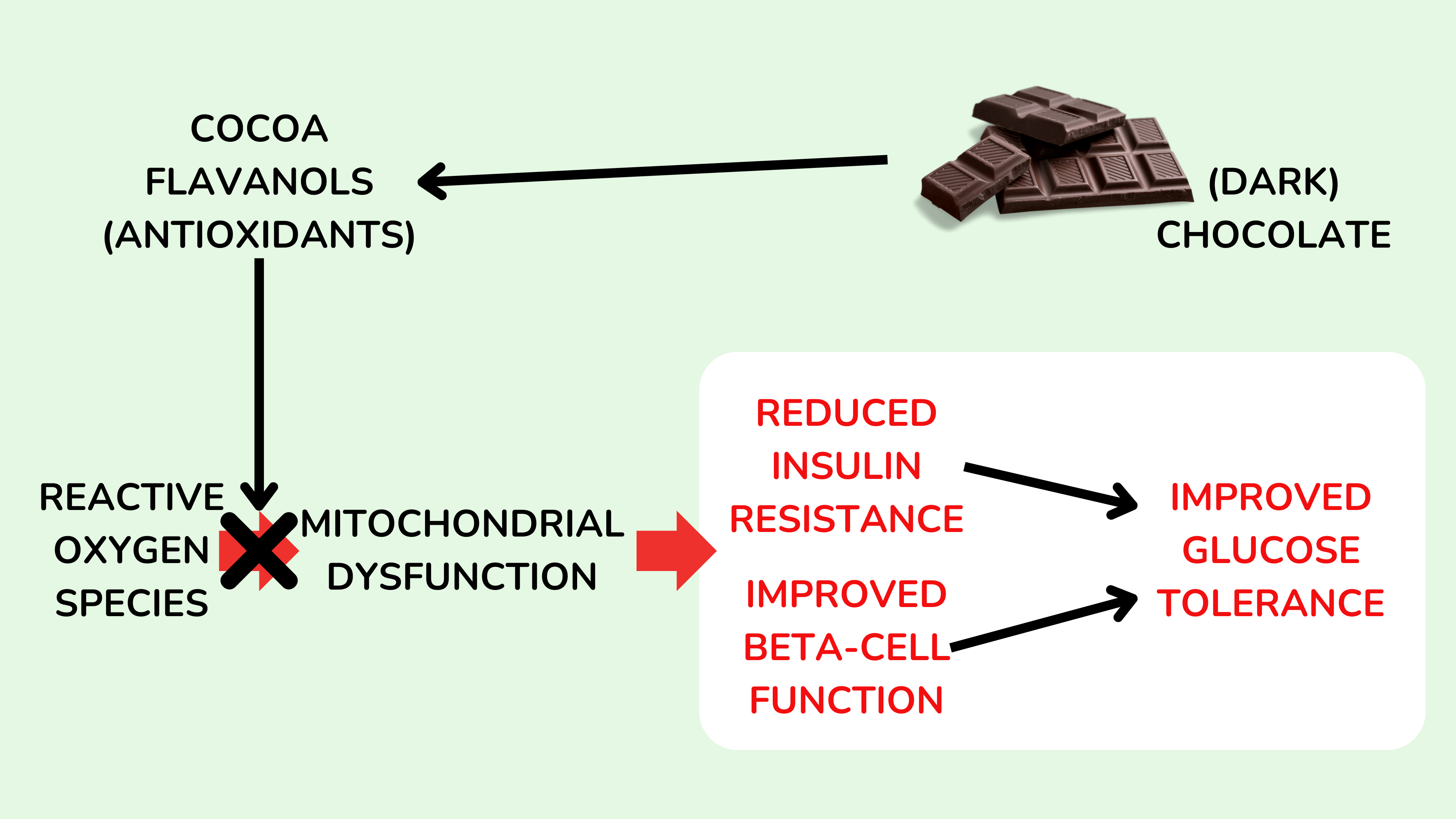 可可黄烷醇可能通过对可能损害线粒体功能的活性氧的抗氧化作用来改善胰岛素敏感性和β细胞功能。