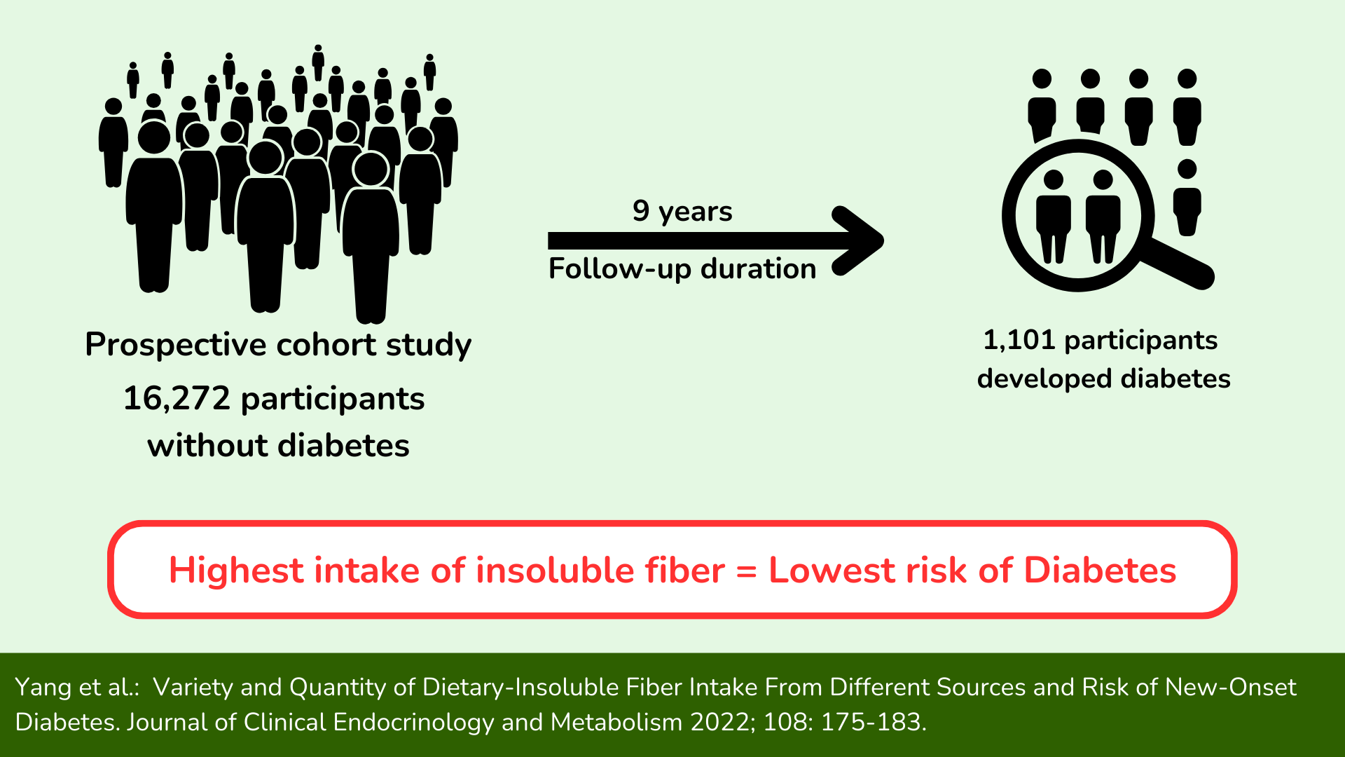 - Yang 等。不同来源膳食不溶性纤维摄入的种类和数量与新发糖尿病风险。 临床内分泌代谢杂志。2022;108:175-183。